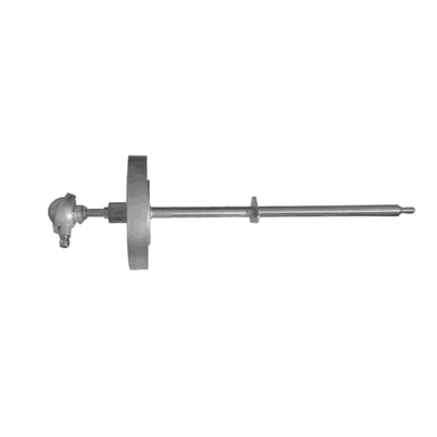 該產品采用前(qián)端鑽孔變徑的進口(kǒu)高溫鎳基合金(jīn)套管,彈頂抽芯式鎧(kǎi)裝芯體,具(jù)有測溫快、耐振動、抗氧化(huà)等優點。高壓鍛打法蘭與套管采用德國自動填料焊機焊接,套管中部增加支撐環,提高套管(guǎn)強度。